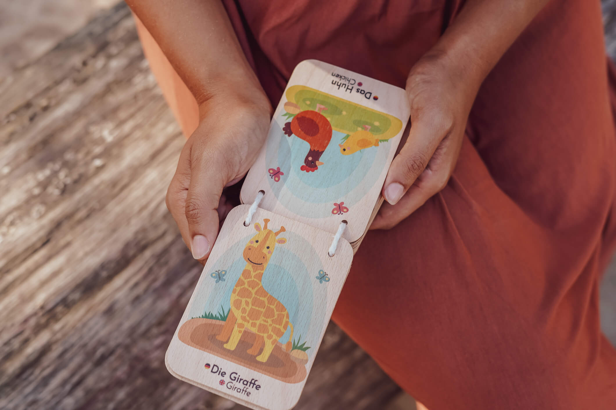 With our bilingual learning and memory playing cards made of natural wood