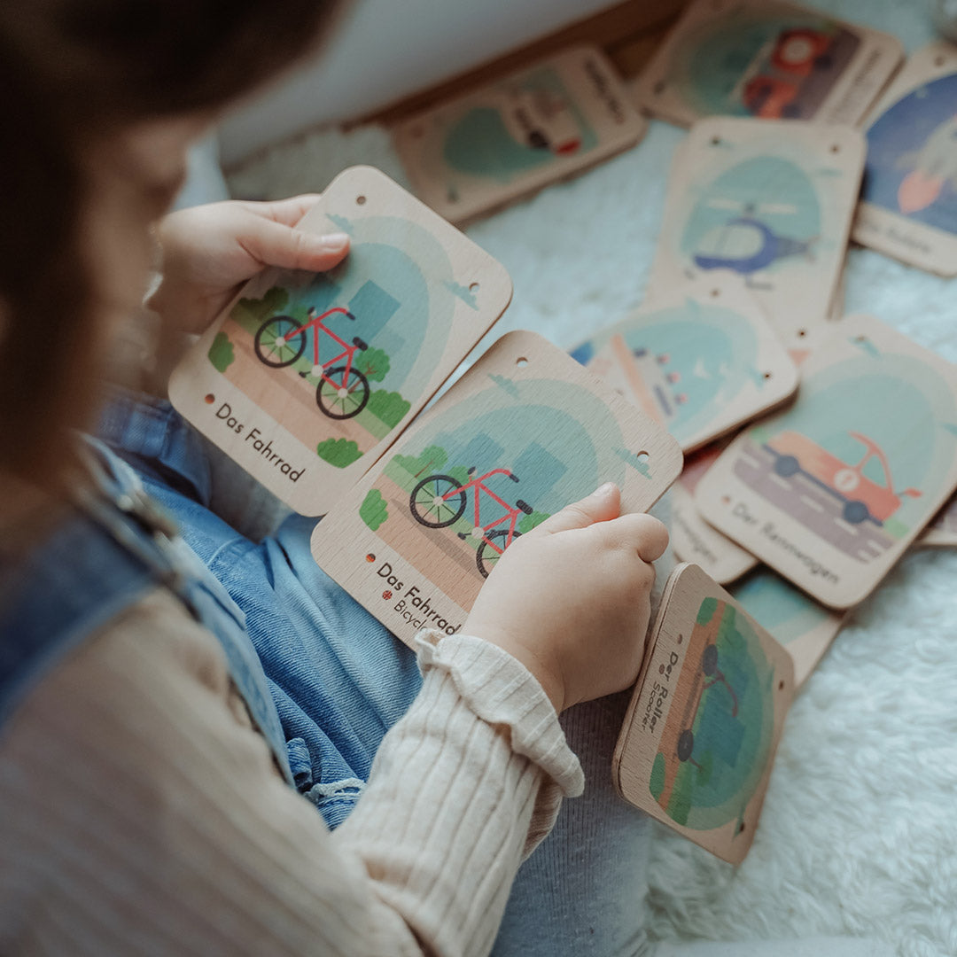 Our flash cards are made from high-quality wood and are ideal for learning their first words or expanding their vocabulary together with your child. With Bee Baby, learning languages becomes child's play.