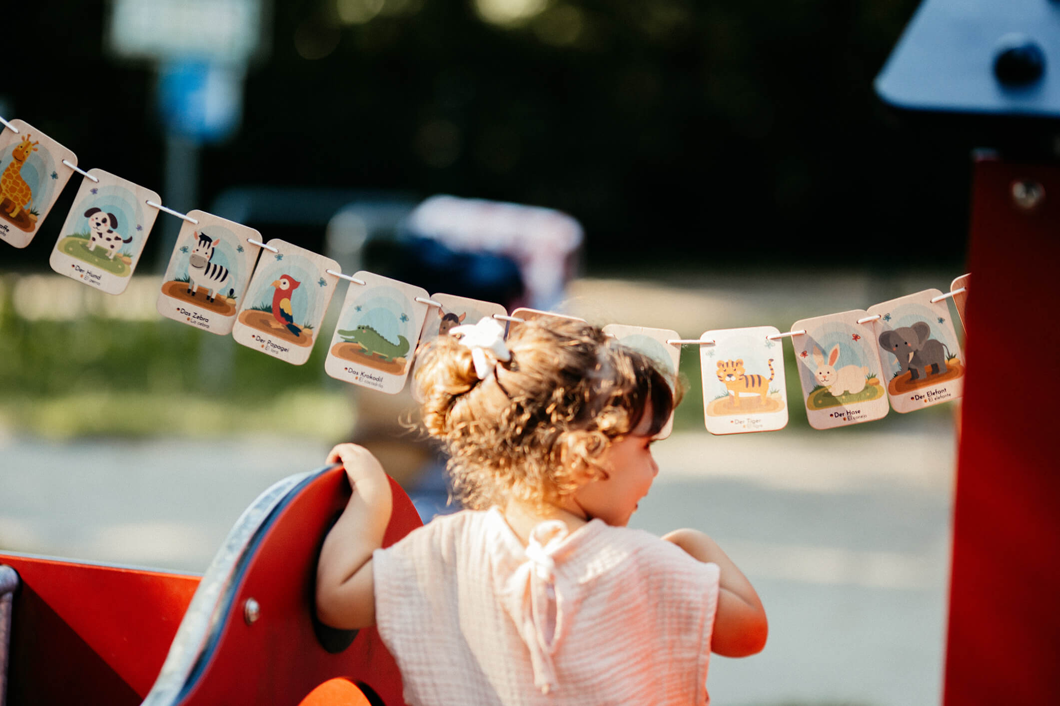 In addition to learning cards to promote language skills, our cards can also be hung as a garland in the children's room or at a garden/birthday party. Or they can be easily bound as a book and taken with you everywhere.