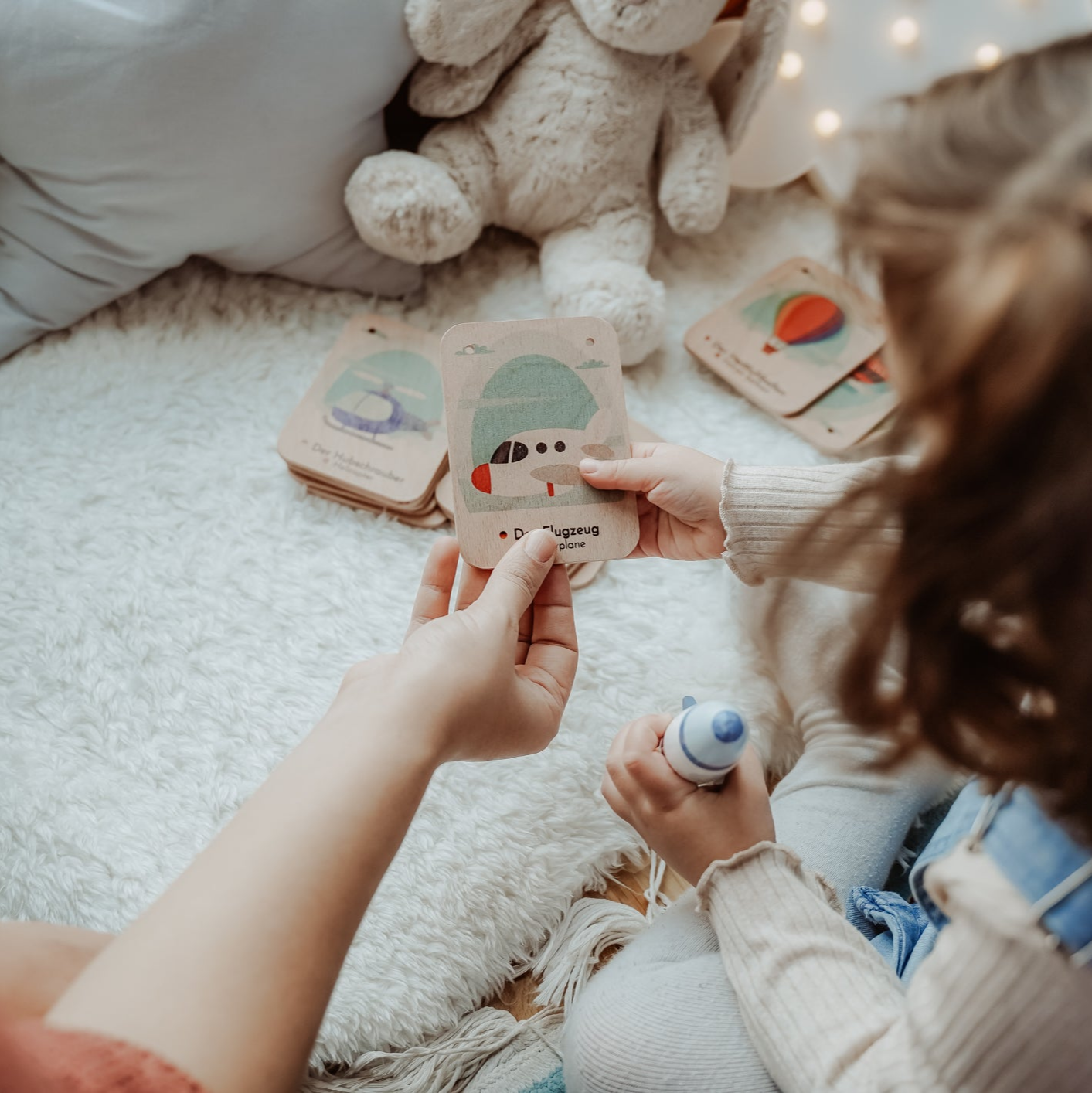 Unsere Karten sind ideal, um gemeinsam die ersten Wörter zu erlernen oder den Wortschatz Ihres Kindes zu erweitern. Zahlreiche Spiel- und Übungsmöglichkeiten für eine Sprachförderung ermuntern Kinder die bunten Motive zu erkennen und mit den Eltern zu interagieren.