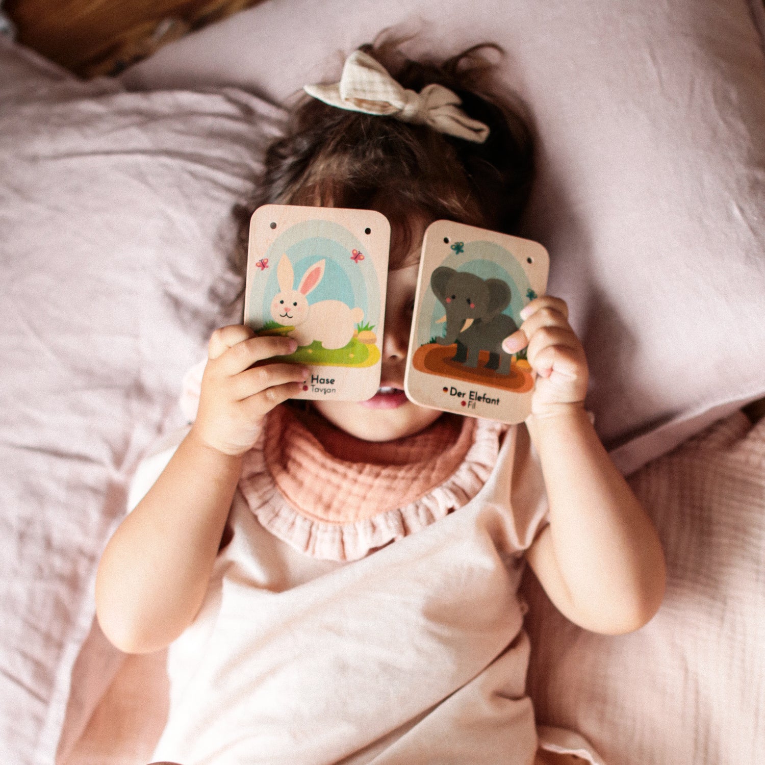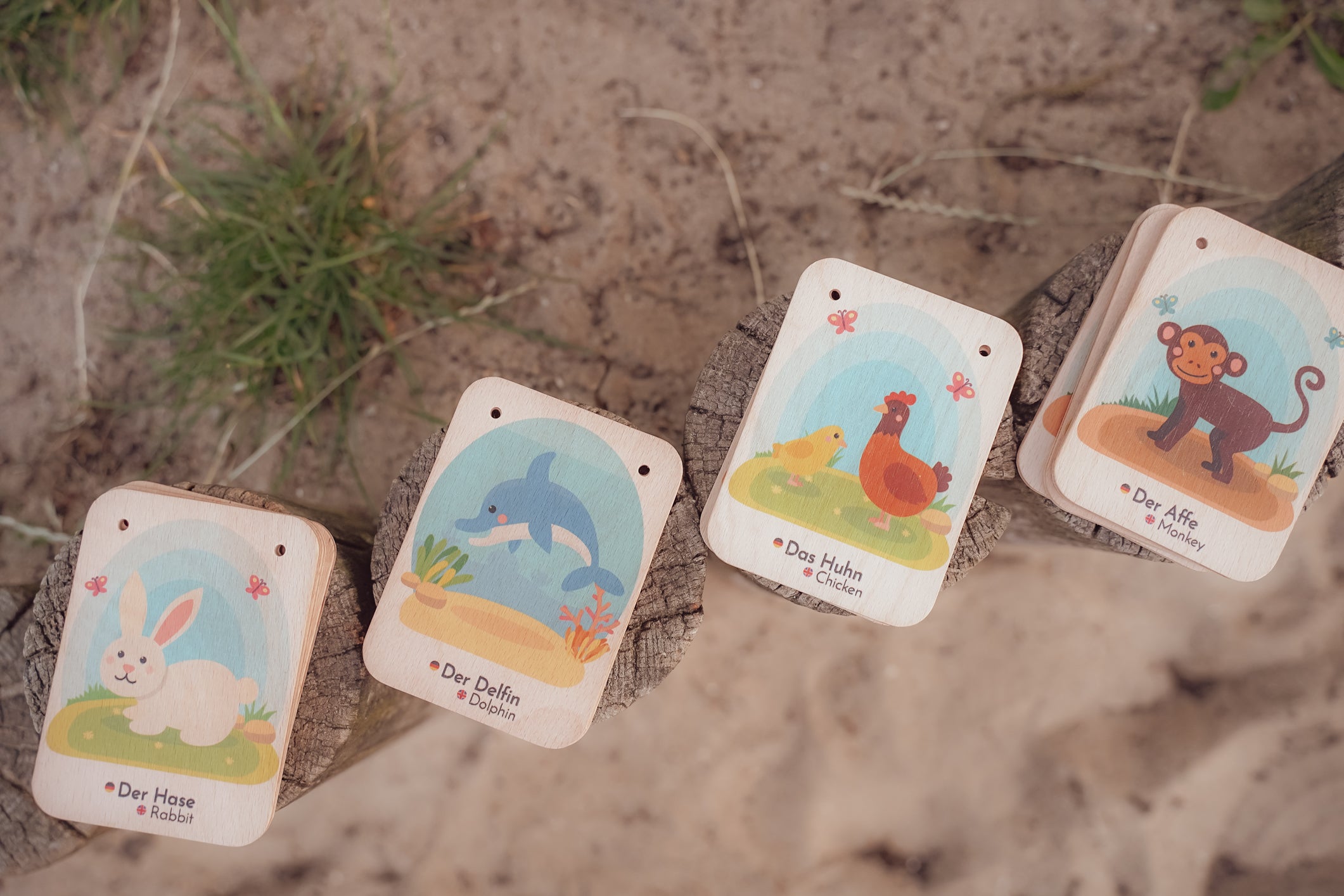 Unsere Montessori Lernkarten sind ideal, um gemeinsam die ersten WΓΆrter in zwei unterschiedlichen Sprachen zu lernen oder den Wortschatz Ihres Kindes zu erweitern. Sie werden aus hochwertigem Buchenholz entsprechend europΓ€ischer Spielzeugrichtlinie 2009/48/EG hergestellt. Daher sind unsere Lernkarten speichelecht, haben natΓΌrlich glatte OberflΓ€chen. Die meisten Schleifprozesse unserer Karten werden von Hand gefertigt und sie haben abgerundete Ecken und keine scharfen Kanten, um mΓΆgliche Verletzungen vorzubeugen.